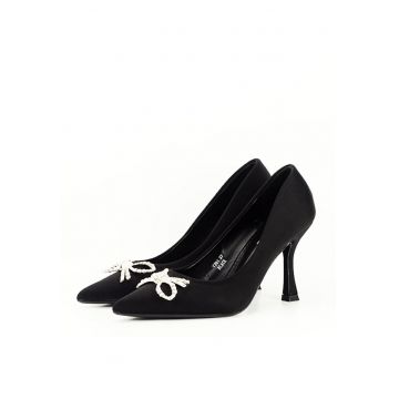 Pantofi negri eleganti cu brosa BYJ8211 04 16618